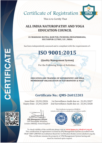 Authoritative, Original, Authentic and Timely Affiliation from All India Naturopathy and Yoga Education Council.